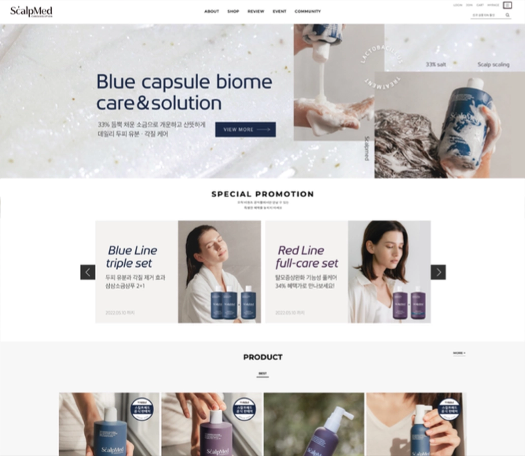 스칼프메드 공식 홈페이지 제작, 디자인 구성, 프로덕트 생성 등 전반적인 자사몰 전반 기획, 운영 및 관리